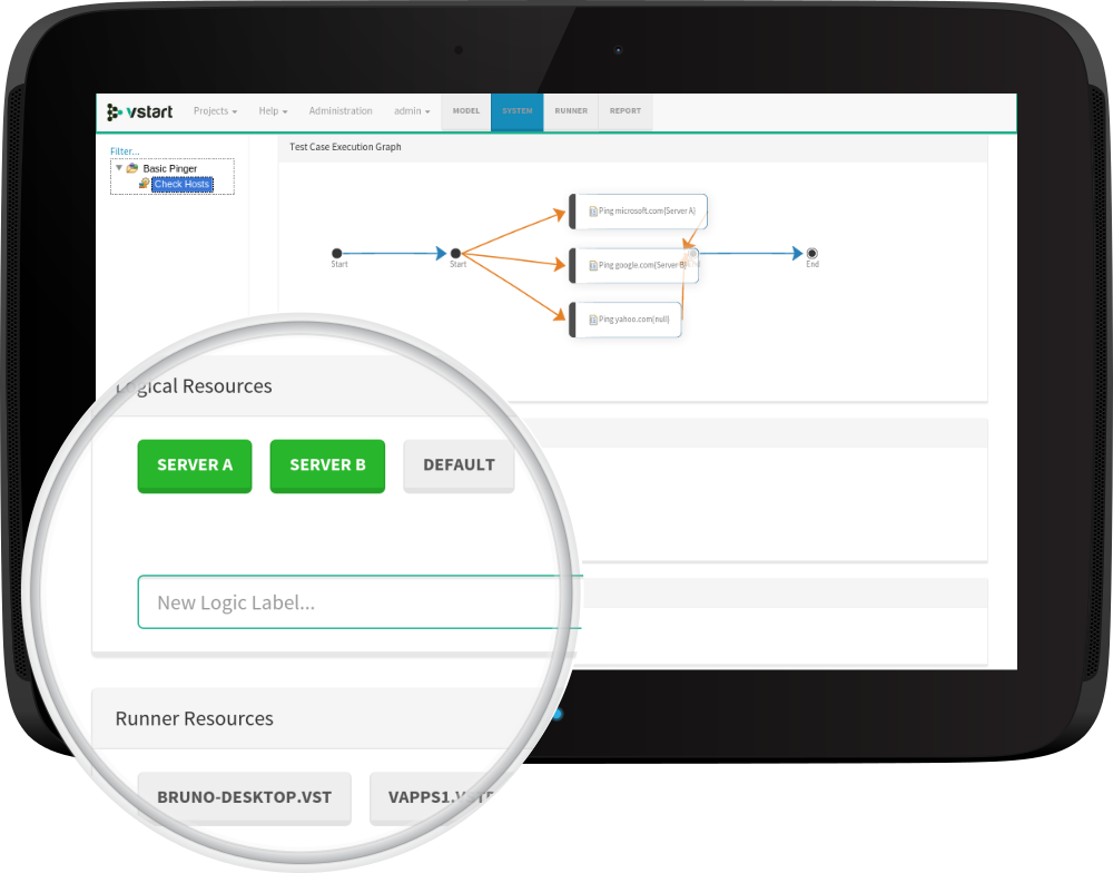 Use the VSTART runner dashboard to control the execution of tests.